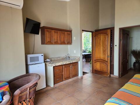 Escape to your private top-floor oceanfront sanctuary in the Coco Coral room. This beautifully appointed suite features a separate entrance, full kitchenette, stunning Pacific Ocean views, and thoughtfully designed spaces that blend comfort with authentic Mexican charm. Enjoy pool access from 10am to 10pm daily.