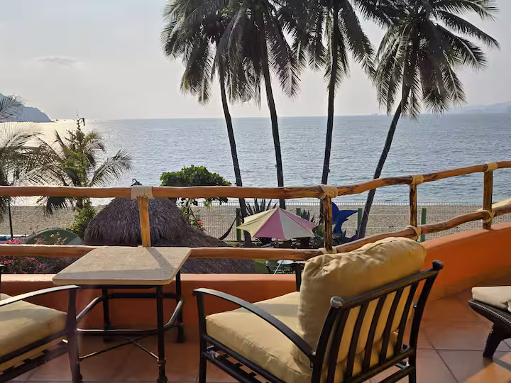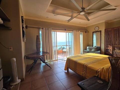 Wake up to panoramic ocean views in the top-floor Olas suite, where the rhythm of the waves becomes your daily soundtrack. This spacious room features a separate entrance, full kitchenette, private terrace, and elegant furnishings that capture the essence of coastal living. Pool access available 10am to 10pm.